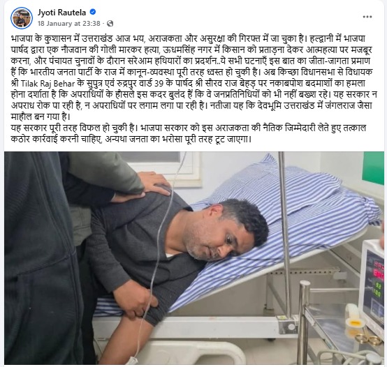 मीडिया में दी प्रतिक्रिया में उन्होंने कहा, भाजपा लगातार सभी दलों से सकारात्मक राजनीति कर, राज्य के विकास में सहयोग का आग्रह करती रही है। लेकिन उनके नेता, विशेषकर कांग्रेस, प्रदेश की छवि खराब करने की कीमत पर सिर्फ और सिर्फ भाजपा को सरकार के प्रति झूठे नेरेटीव गढ़ने में लगी है। सरकार और पार्टी को टारगेट करने के लिए वह भ्रम और अफवाह का माहौल खड़ा करने का प्रयास करती रहती है। और प्रत्येक बार उसे मुंह की खानी पड़ती है, चाहे दुखद अंकिता प्रकरण हो, चाहे काशीपुर किसान आत्महत्या हो, चाहे आपदा का मुद्दा हो या बाबा केदारनाथ धाम का विषय हो।