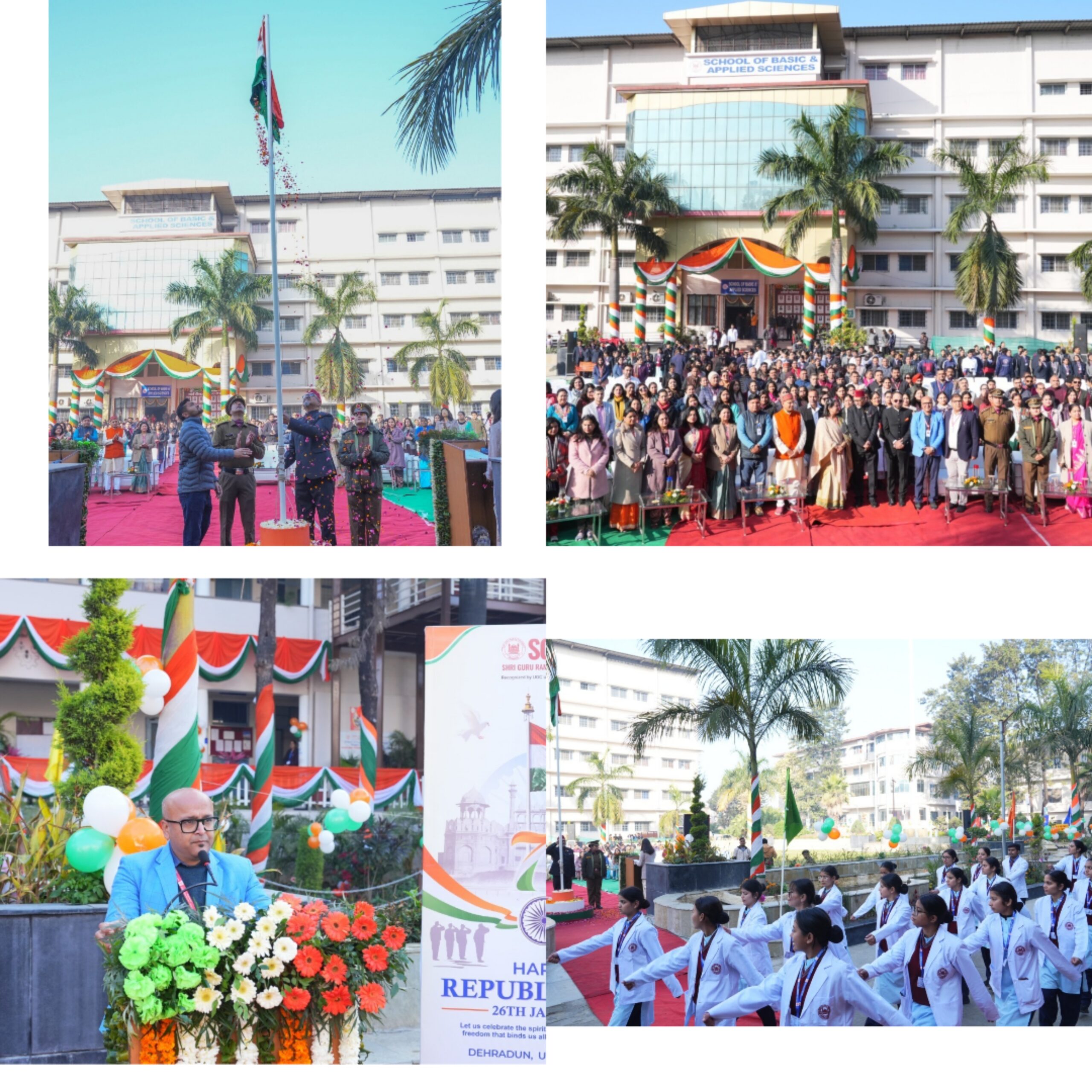 देहरादून। श्री गुरु राम राय विश्वविद्यालय (एसजीआरआरयू) सहित एसजीआरआर समूह के समस्त संस्थानों में देशभक्ति, राष्ट्र गौरव और भारतीय संविधान के प्रति आस्था का भव्य उत्सव देखने को मिला। दरबार श्री गुरु राम राय जी महाराज, एसजीआरआर विश्वविद्यालय एवं एसजीआरआर समूह के अन्य शिक्षण संस्थानों में राष्ट्रीय ध्वज पूरे सम्मान, आन-बान और शान के साथ फहराया गया।