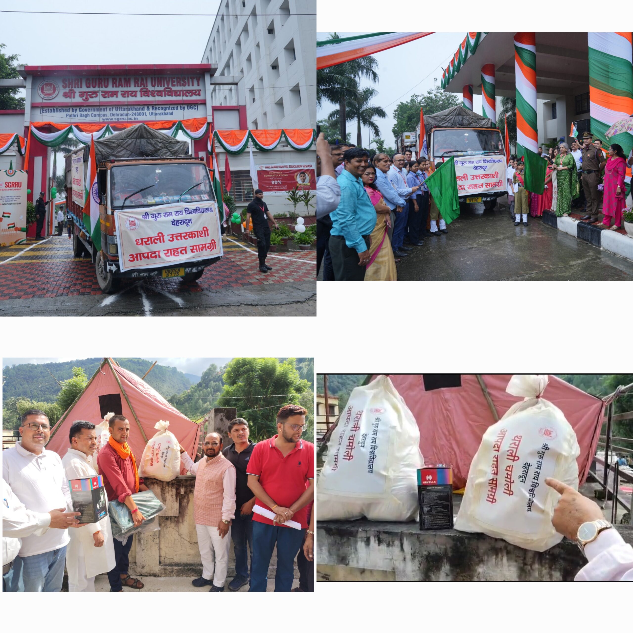 स्वतंत्रता दिवस के अवसर पर श्री गुरु राम राय विश्वविद्यालय ने धराली (उत्तरकाशी) आपदा प्रभावितों के लिए 2 ट्रक सहित 4 वाहनों मंे राहत एवम् खाद्य सामग्री भेजी। गैस सिलेण्डर, गैस चूल्हे, रेग्यूलेटर, गैस पाइप, कम्बल, राशन का जरूरी सामान और आवश्यक बर्तनों ने आपदा प्रभावितों की उम्मीदों पर राहत का मरहम लगाया।