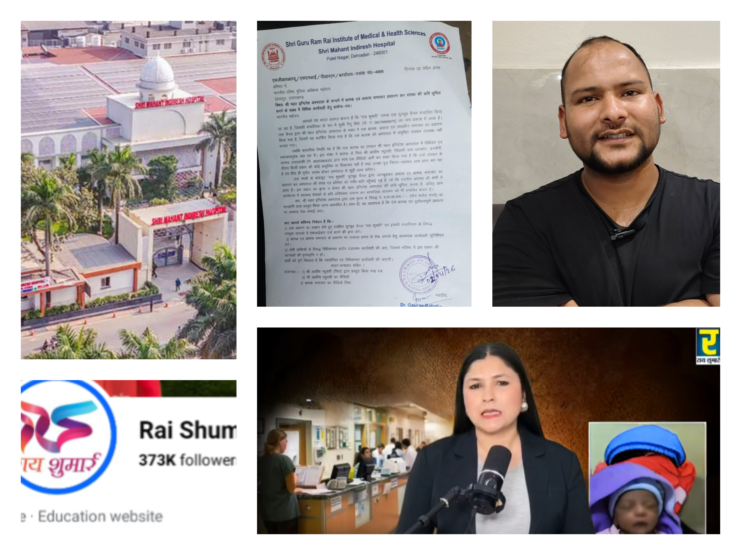 यूट्यूब चैनल ‘राय शुमारी’ ने एक भ्रामक वीडियो समाचार पोस्ट किया। वीडियो में राय शुमारी चैनल ने एक नवजात बच्चे के उपचार के मामले को तोड़-मरोड़कर पेश किया। यूट्यूब चैनल ने झूठी एवम् भ्रामक जानकारी को खबर का आधार बनाया ताकि लोगों के बीच भ्रम परोसा जा सके। इसका नतीजा यह रहा कि श्री महंत इन्दिरेश अस्पताल ने एसएसपी देहरादून को पत्र लिखकर चैनल पर कड़ी कार्रवाई की मांग की है। राय शुमारी यूट्यूब चैनल ने बिना तथ्यों को जाॅचें परखे ऐसा दावा क्यों किया ?? यह चैनल के प्रबन्धन को उनके पत्रकारों से अवश्य पूछना चाहिए। समाचार में ऐसा झूठ बोला गया कि 25 हजार रुपये के अभाव में नवजात का इलाज नहीं हो सका। हालांकि, जब पूरे मामले की जांच की गई तो सच्चाई कुछ और ही सामने आई। बच्चे के पिता ने खुद यह स्पष्ट किया कि श्री महंत इन्दिरेश अस्पताल द्वारा उनके बच्चे को उपचार देने में किसी प्रकार का कोई भी विलम्ब नहीं किया गया।